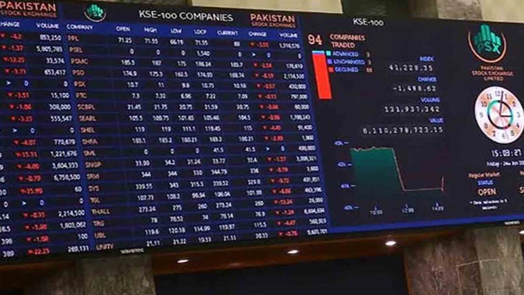 واضح رہے کہ گزشتہ کاروباری روز کے اختتام پر انڈیکس 1578 پوائنٹس کی کمی کیساتھ ایک لاکھ 66 ہزار 173 پوائنٹس کی سطح پر بند ہوا تھا۔