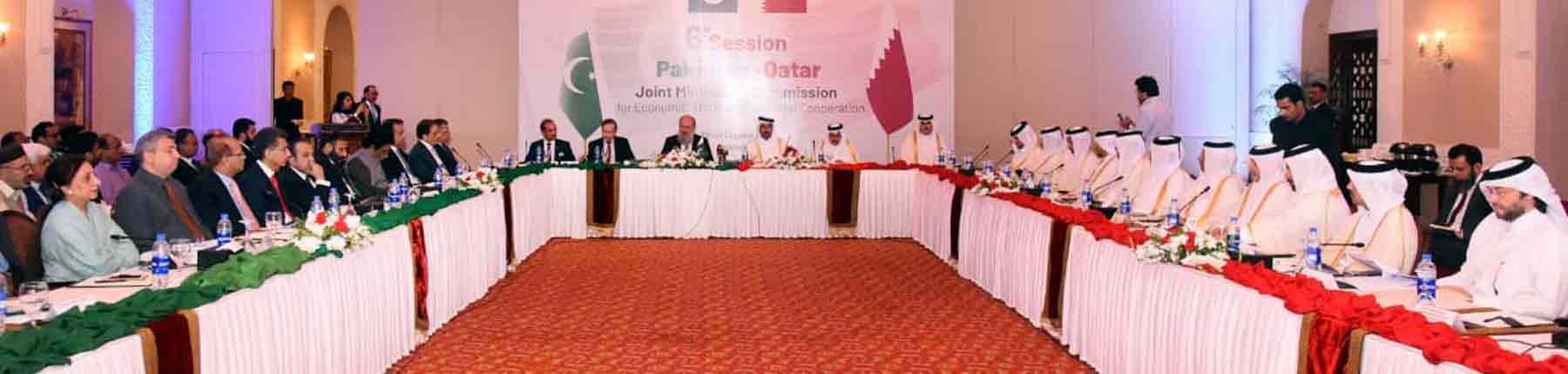 وفاقی دارالحکومت میں پاکستان اور قطر کے درمیان چھٹے مشترکہ وزارتی کمیشن (جے ایم سی) کا اجلاس منعقد ہوا، جس کی صدارت وزیرِ تجارت جام کمال خان اور قطری وزیرِ تجارت شیخ فیصل بن ثانی نے کی۔