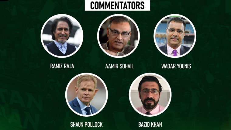 دوسری جانب وائٹ بال سیریز کے کمنٹری پینل میں عامر سہیل، رمیز راجہ، عروج ممتاز اور جنوبی افریقا کے سابق کرکٹر جے پی ڈومنی اور ورنن فلینڈر شامل ہیں۔