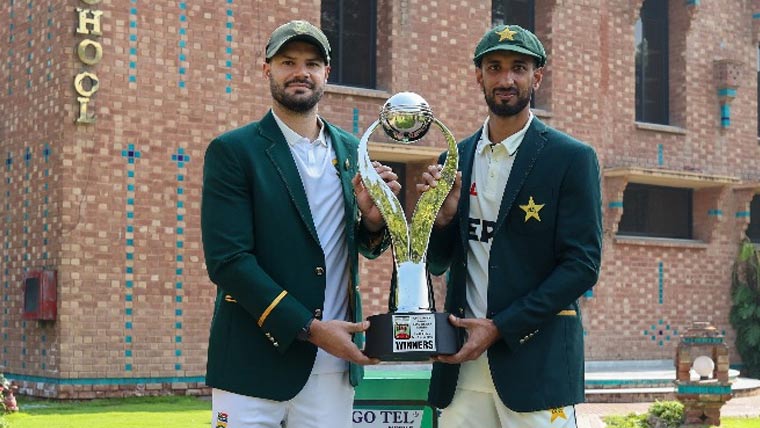 قبل ازیں ٹاس کے بعد گفتگو کرتے ہوئے قومی ٹیم کے کپتان شان مسعود نے کہا کہ سٹیڈیم نیا بنا ہے معلوم نہیں یہاں ٹیسٹ میچ کیسا ہوگا، ورلڈ چیمپئن جنوبی افریقہ کیخلاف کھیلنا ایک بہترین موقع ہے، ہمارے پاس 2 سپنرز ہیں جو طویل اوورز کراسکتے ہیں۔