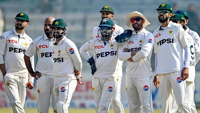 شان مسعود (کپتان)، عبداللہ شفیق، امام الحق، بابر اعظم، سعود شکیل، محمد رضوان (وکٹ کیپر)، سلمان علی آغا، شاہین شاہ آفریدی، حسن علی، نعمان علی اور ساجد خان قومی ٹیم میں شامل ہیں۔