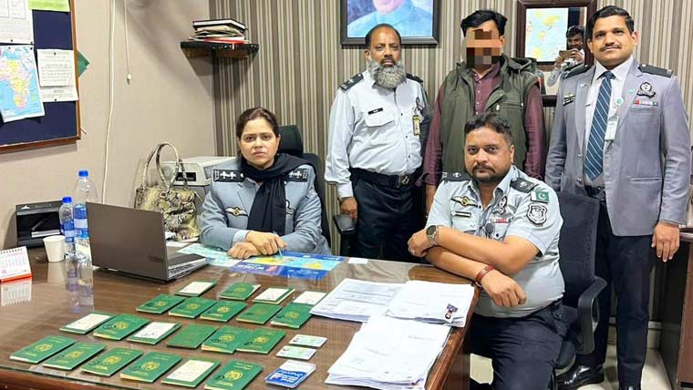 ریاض حسین نامی ملزم بین الاقوامی پرواز سے ایران جا رہا تھا، ملزم کے قبضے سے 20 پاکستانی پاسپورٹس برآمد ہوئے۔