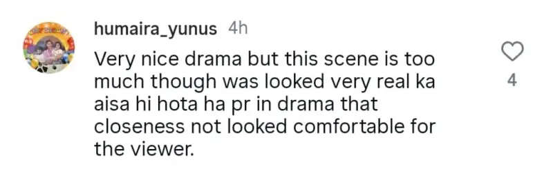 ایک صارف نے لکھا کہ ہدایتکار کو شرم آنی چاہیے کہ اس نے اس قدر قربت دکھانے کی اجازت دی، اب پاکستانی ڈرامے بھی بھارتی ڈراموں کی روش پر چلنے لگے ہیں جہاں ایسے مناظر عام ہیں۔