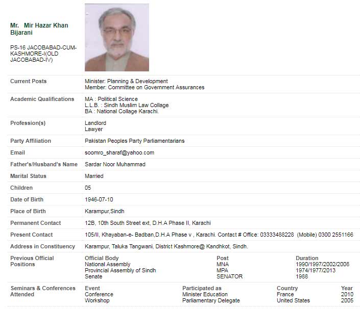 خیال رہے میر ہزار خان بجارانی پی ایس 16 جیکب آباد سے رکن اسمبلی منتخب ہوئے، ان کا تعلق ضلع کشمور کے علاقے کرم پور سے تھا۔ میر ہزار خان بجارانی وزیر پلاننگ اینڈ ڈولپمنٹ سندھ کے عہدے پر تھے۔ 4 مرتبہ ایم این اے، 3 بار رکن سندھ اسمبلی اور 1988 میں سینیٹر رہے۔ میر ہزار وفاقی وزیر دفاع، تعلیم اور ریلوے کے منصب پر بھی فائز رہے۔ اہلیہ فریحہ رزاق بھی رکن سندھ اسمبلی رہ چکی ہیں۔