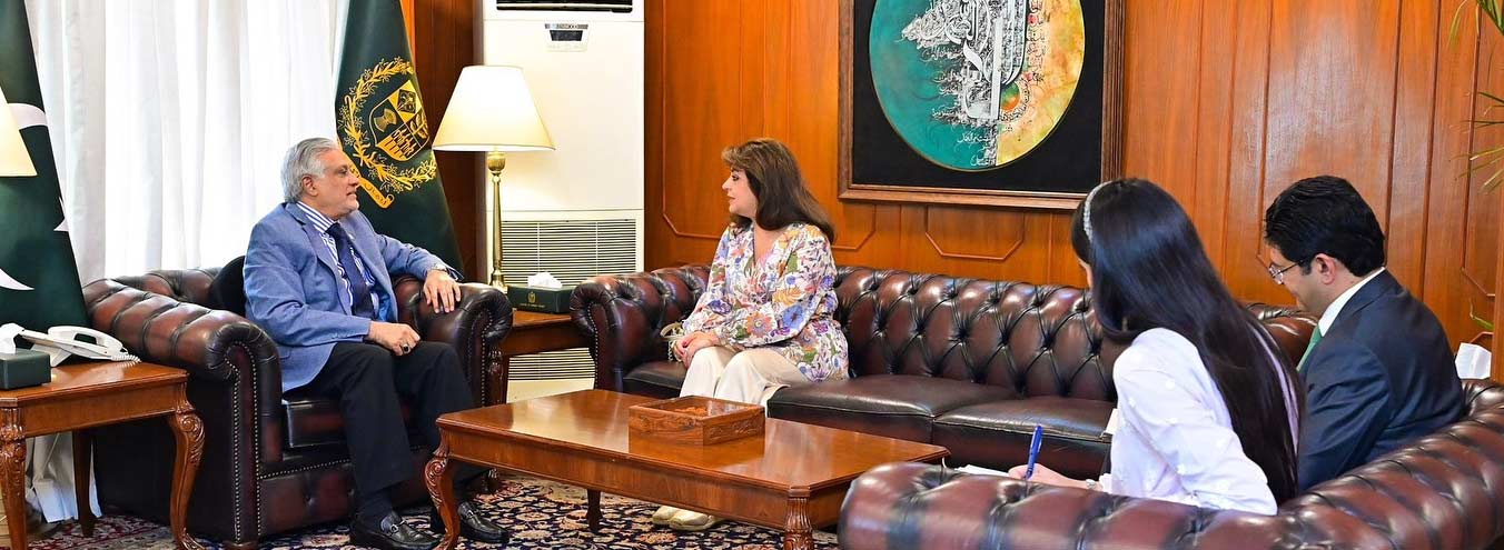 اسلام آباد: (دنیا نیوز) ترجمان دفتر خارجہ کے مطابق بیرونس نوشینہ مبارک سی بی ای کی نائب وزیرِاعظم و وزیرِ خارجہ اسحاق ڈار سے ملاقات ہوئی۔