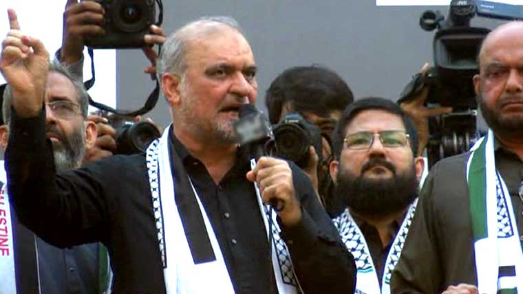 امیر جماعت اسلامی نے کہا کہ اہل غزہ قربانیاں دے رہے ہیں اور اردگرد کے مسلم ممالک امریکا کے غلام بن کر خاموش تماشائی بنے ہوئے ہیں اور وہ ملک جسے اپنے ایٹم بم اور فوج پر ناز ہے وہ بھی امریکا کی چاپلوسی میں مصروف ہے۔