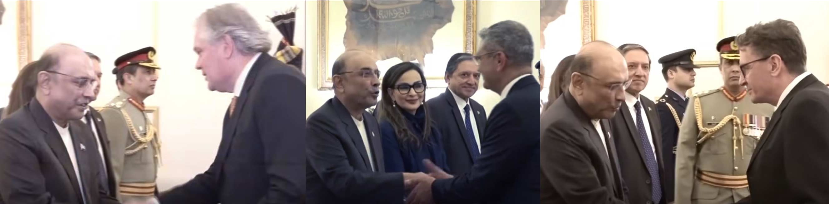 ایوانِ صدر پہنچنے پر سفیروں کو پاک فوج کے دستے نے گارڈ آف آنر پیش کیا، صدر آصف علی زرداری نے نومنتخب سفیروں کو عہدہ سنبھالنے پر مبارکباد دی۔