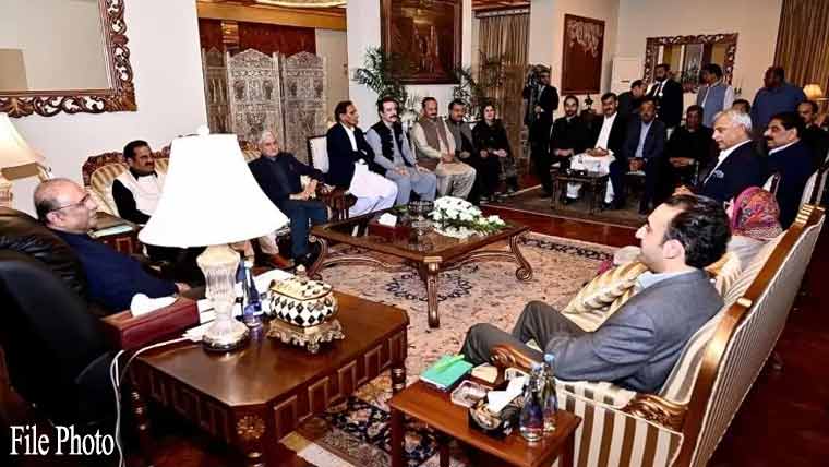 آزاد کشمیر میں حکومت سازی کیلئے پیپلز پارٹی کے قائدین کا صدر آصف علی زرداری کی زیر صدارت ایوان صدر میں اہم اجلاس ہوا جس میں بلاول بھٹو اور فریال تالپور سمیت پارٹی کی اعلیٰ قیادت شریک ہوئی، اجلاس میں پیپلز پارٹی آزاد کشمیر پارلیمانی پارٹی کے ارکان نے بھی شرکت کی۔