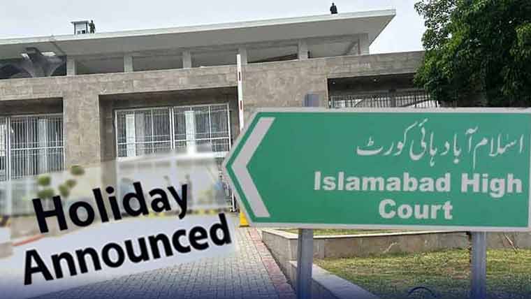اسلام آباد ہائیکورٹ کے چیف جسٹس سرفراز ڈوگر کی ہدایت پر رجسٹرار آفس کی جانب سے تعطیل کا نوٹیفکیشن جاری کر دیا گیا۔