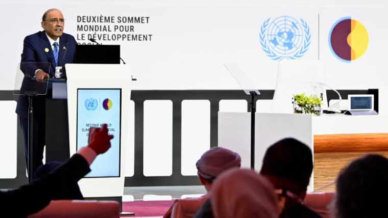 صدر مملکت آصف علی زرداری نے دوحہ میں عالمی سماجی ترقیاتی کانفرنس سے خطاب کرتے ہوئے کہا کہ ایسی دنیا چاہتے ہیں جہاں سماجی ہم آہنگی، مساوات، یکجہتی اور انسانی حقوق کا احترام ہو، ہمارا ویژن جامع اور پائیدار ترقی ہے۔