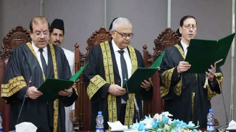 چیف جسٹس امین الدین خان جوڈیشل کونسل کے دوسرے سینئر ممبر ہوں گے، جسٹس منیب اختر، جسٹس حسن رضوی، جسٹس جمال مندوخیل جوڈیشل کونسل کے رکن ہوں گے جبکہ جسٹس مندوخیل کی نامزدگی دونوں چیف جسٹس نے مشاورت سے کی ہے۔