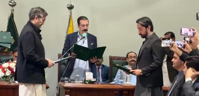 آزاد کشمیر حکومت کے 2 مشیروں نے بھی اپنے عہدے کا حلف اٹھا لیا، وزیراعظم نے مشیروں سے ان کے عہدے کا حلف لیا۔