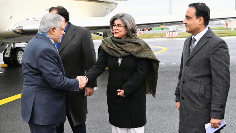 برسلز انٹرنیشنل ایئرپورٹ پہنچنے پر سیکرٹری خارجہ آمنہ بلوچ، یورپین یونین، بیلجیئم اور لکسمبرگ کیلئے پاکستان کے سفیر رحیم حیات قریشی اور سفارت خانہ پاکستان بیلجیئم کے افسران نے وزیر خارجہ اسحاق ڈار کا پرتپاک خیر مقدم کیا۔