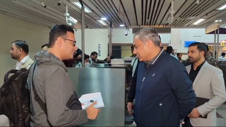 وفاقی وزیرداخلہ محسن نقوی نے لاہور ایئرپورٹ کا دورہ کیا اور مسافروں کے امیگریشن عمل کا جائزہ لیا ، امیگریشن کاونٹرز پر مسافروں کی ٹریول ہسٹری کو شناختی کارڈز اور پاسپورٹس سے منسلک کرنے کے نظام کا مشاہدہ کیا۔