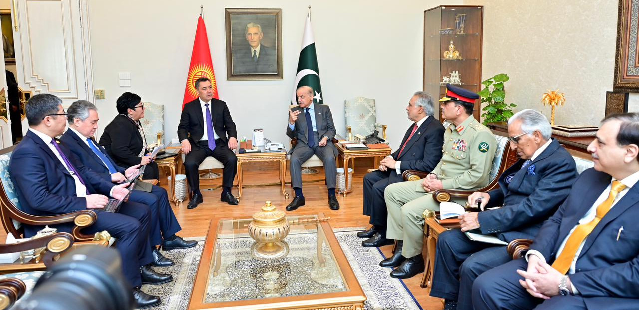وزیراعظم شہباز شریف اور کرغزستان کے صدر صادر ژاپاروف کی وفود کی سطح پر ملاقات ہوئی، اس موقع پر فیلڈ مارشل جنرل سید عاصم منیر، نائب وزیراعظم و وزیر خارجہ محمد اسحاق ڈار، نیشنل سکیورٹی ایڈوائزر لیفٹیننٹ جنرل عاصم ملک اور معاون خصوصی طارق فاطمی بھی موجود تھے، دوران ملاقات تجارت، توانائی، مواصلات اور دیگر شعبوں میں تعاون پر گفتگو ہوئی۔