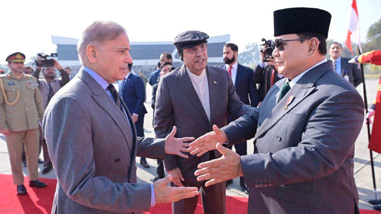 اسلام آباد پہنچنے پر صدر آصف علی زرداری اور وزیراعظم شہباز شریف نے انڈونیشیا کے صدر پرابووو سوبیانتو اور اعلیٰ سطح کے وفد کا استقبال کیا۔