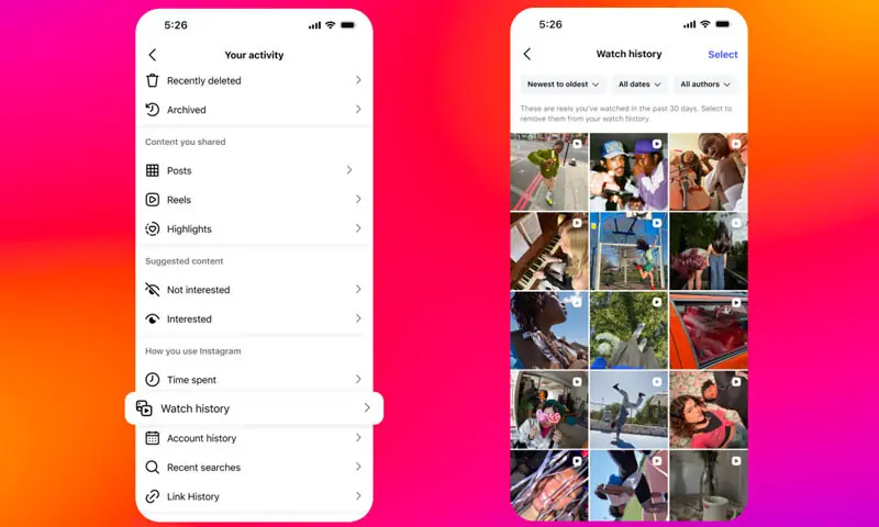 انسٹاگرام پر سکرولنگ کے وقت دیکھی گئی ویڈیو یا پوسٹ کے سکرین سے غائب ہوجانے کے بعد دوبارہ دیکھنا ممکن نہیں تھا لیکن اب صارفین ’واچ ہسٹری‘ کے فیچر کے ذریعے وہ مواد بھی دیکھ سکیں گے۔