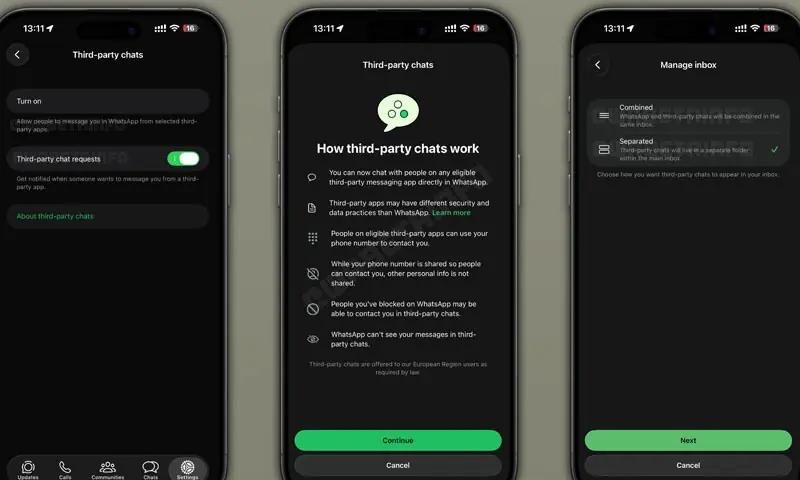 رپورٹ کے مطابق واٹس ایپ نے دوسری ایپلی کیشن پر براہ راست میسیجز بھیجنے کا فیچر ابتدائی طور پر صرف یورپ میں پیش کیا ہے اور فوری طور پر صرف آئی او ایس صارفین ہی اسے استعمال کر سکیں گے۔