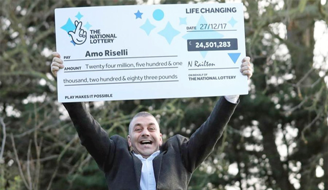 برطانیہ کے علاقہ گلوکسٹر کے رہائشی ایمو روسیلی نامی ٹیکسی ڈرائیور کا لاٹری میں جیک پاٹ لگا اور اسے اڑھائی کروڑ پائونڈ( تقریباً ساڑھے تین ارب روپے ) ملے۔ ایمو روسیلی کی اہلیہ 4 سال قبل ہارٹ اٹیک سے وفات پاگئی تھیں اور اس کی پانچ بیٹیاں اپنے باپ کے اچانک امیر ہوجانے پر نہایت خوش ہیں۔