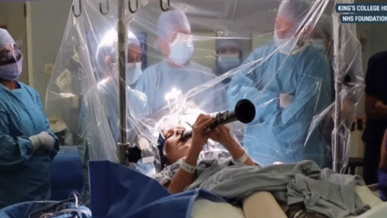 خبر ایجنسی کے مطابق 65 سالہ پارکنسن کی مریضہ ڈینس بیکن کا آپریشن لندن کے کنگز کالج ہسپتال میں کیا گیا، چار گھنٹے طویل آپریشن کے دوران مریضہ نے شہنائی بجائی تاکہ وہ ڈی بی ایس عمل کے دوران مریضہ کا ردعمل جان سکیں۔