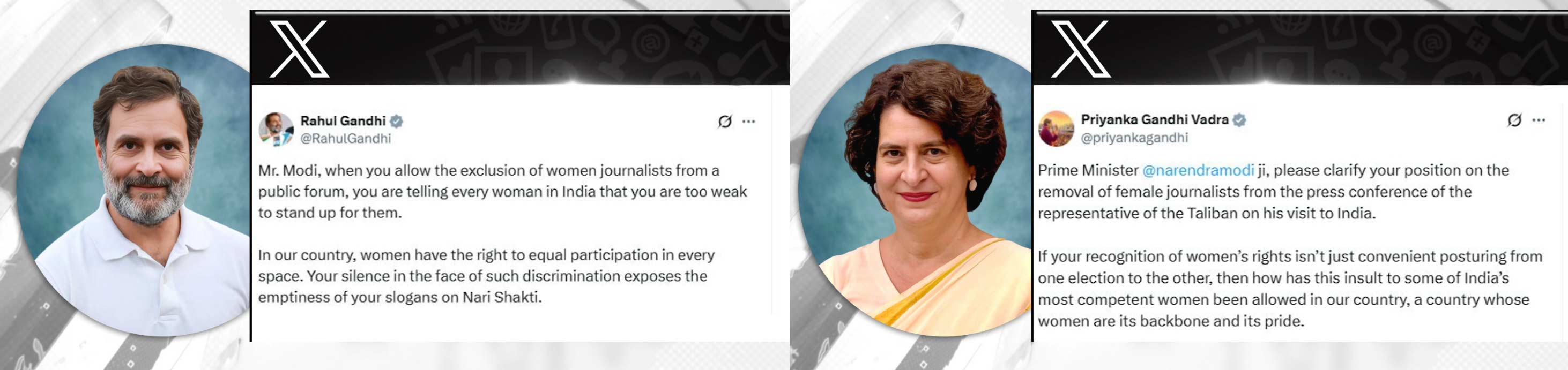 اس واقعے پر اپوزیشن رہنماؤں، بھارتی صحافیوں اور کارکنوں نے شدید ردعمل کا اظہار کیا، ناقدین نے مودی حکومت پر طالبان کی خواتین دشمن پالیسی کی حمایت کا الزام لگایا ہے۔