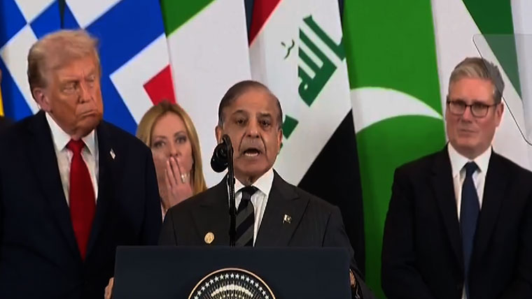 پریس کانفرنس کے دوران ٹرمپ نے وزیراعظم شہباز شریف کی جانب دیکھ کر انہیں عظیم رہنما قرار دیا، اس موقع پر وزیراعظم شہبازشریف نے مثبت ردعمل کا اظہار کرتے ہوئے کہاکہ ہم نے بھارت کے 7 طیارے گرائے تھے۔